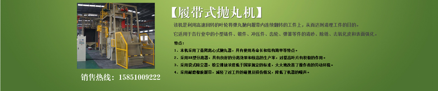 公司主要產(chǎn)品有各種型號拋丸機、履帶式拋丸機、吊鉤式拋丸機、懸鏈?zhǔn)綊佂铏C、通過式拋丸機;各種型號鑄鋼丸、鋼砂、合金鋼丸、強化鋼丸、不銹鋼丸;噴砂設(shè)備;環(huán)保除塵設(shè)備;鑄造設(shè)備;高效拋丸器;各種型號拋丸機配件等,并可根據(jù)用戶產(chǎn)品及產(chǎn)量需求設(shè)計符合要求的拋丸機;本公司產(chǎn)品從設(shè)計、開發(fā)、生產(chǎn)到服務(wù),全過程實行監(jiān)控,其產(chǎn)品在全方位立體的營銷服務(wù)網(wǎng)絡(luò)中,遍布全國各省市區(qū)。